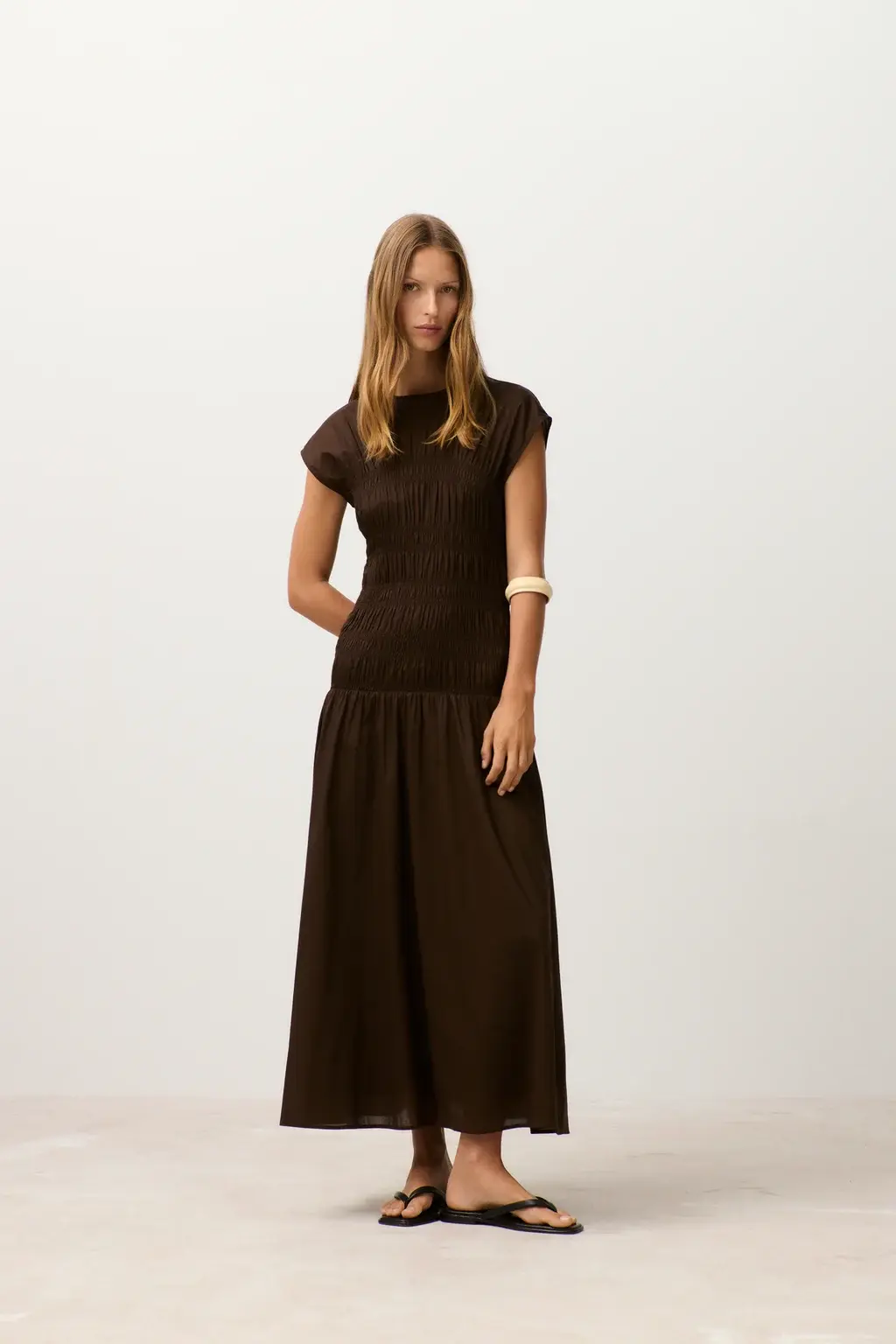 SMOCKED Dress Maple Brown